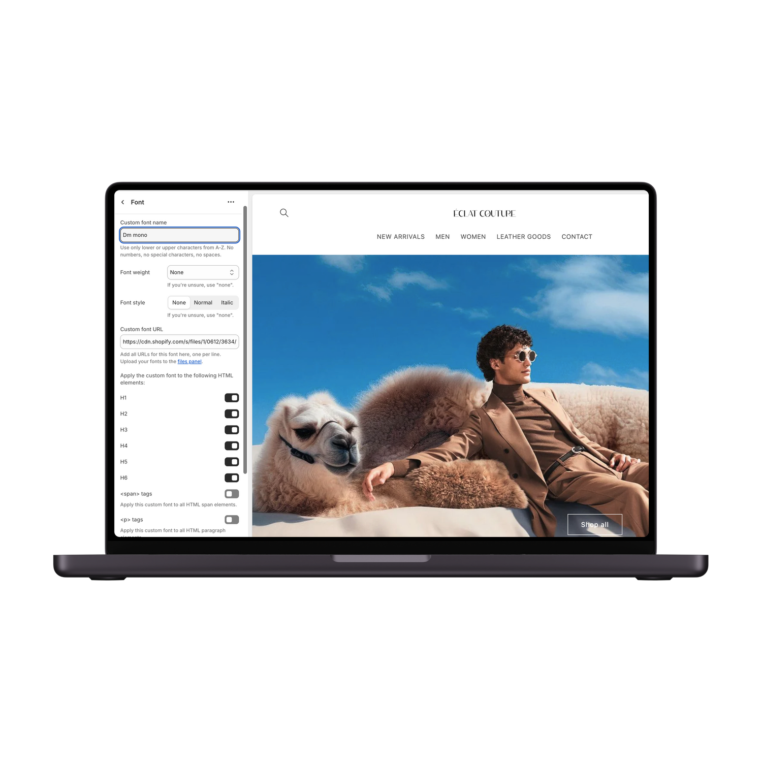 With our Pre-built stores, you’re not limited to basic fonts. You can upload any font you find online — and we show you exactly how to do it inside the video guide.